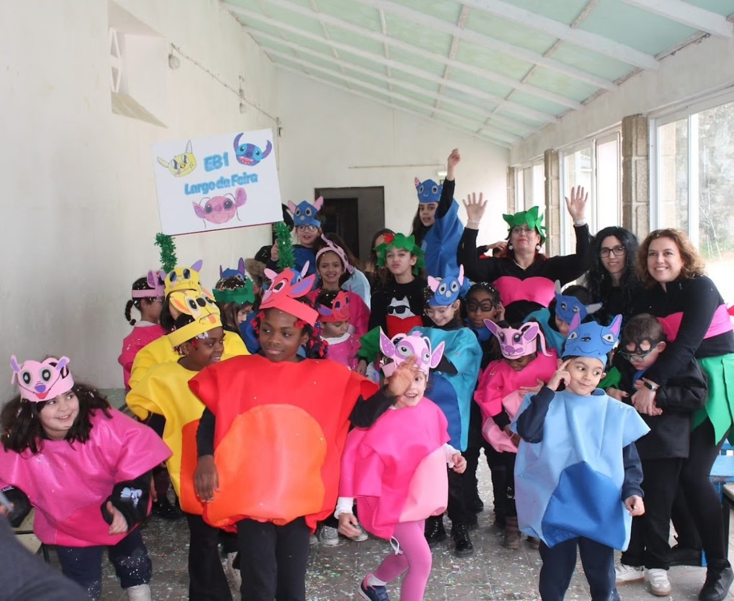 De lápis, cola, fita métrica e tesouras nas mãos, foram as crianças que idealizaram e planearam o Carnaval 2026 na Escola Largo da Feira. Assumiram o controlo do processo e construíram as máscaras e os fatos das personagens escolhidas, decidindo materiais, pormenores e músicas, com um papel activo e responsável em todas as etapas. Mais do que o resultado final, valorizou-se o percurso vivido, as aprendizagens e o crescimento individual e colectivo. Estes trabalhos são determinantes para estimular a cidadania, pois mostram às crianças que são capazes de concretizar pelas suas próprias mãos projectos com significado e de encontrar soluções para desafios comuns, porque, juntas, conseguem mais e melhor.